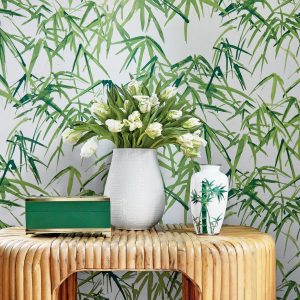 Papel pintado con dibujo en acuarela de hojas de bambú