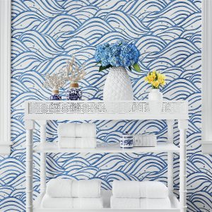 Papel pintado con dibujos de olas de estilo japonés en azul