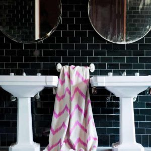Tela de visillo estampado de rayas en zig – zag y 3m de ancho