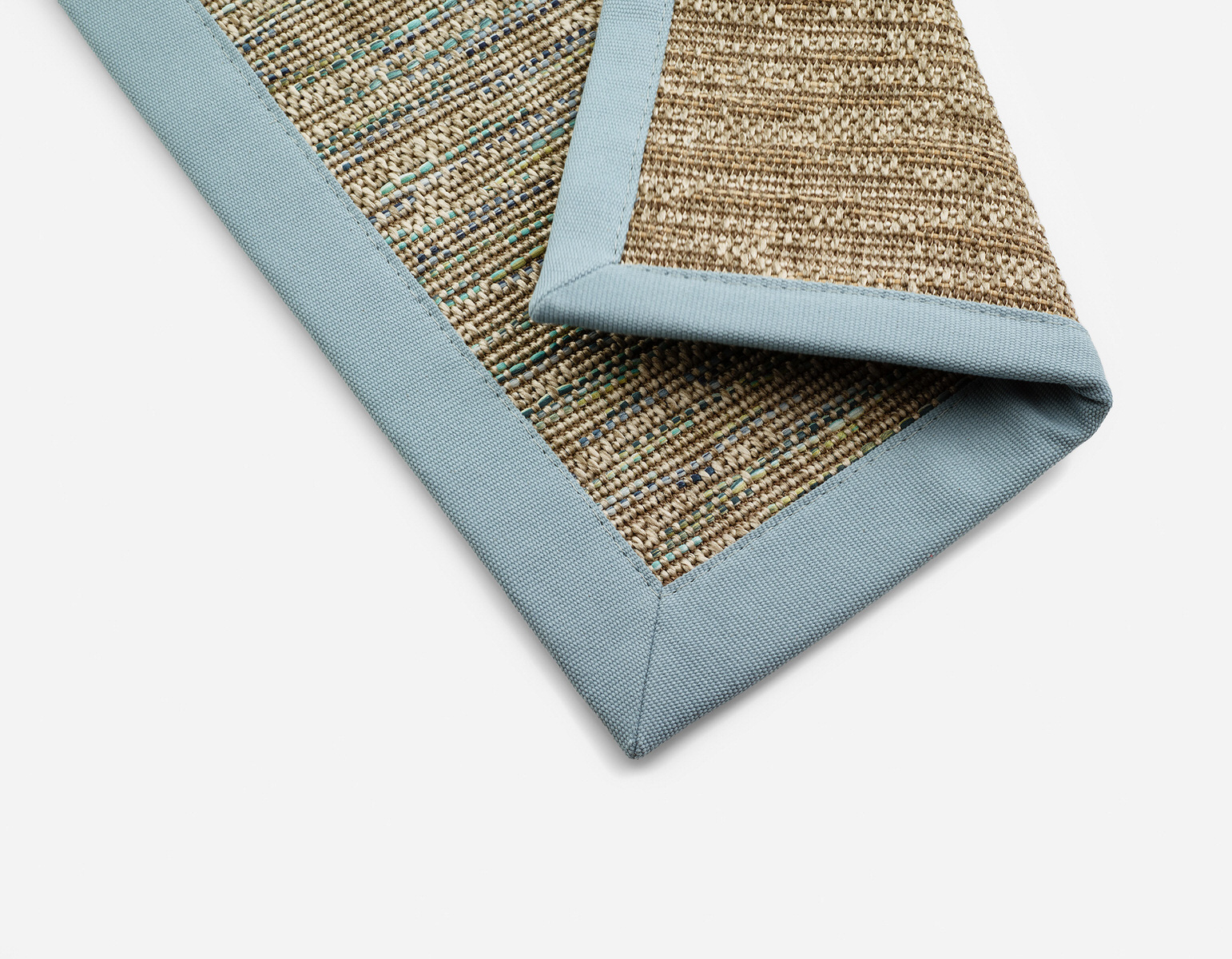 El hilo 100% algodón, cosido en una puntada de aro en la alfombra, da como resultado un borde fino. Acabado muy resistente.