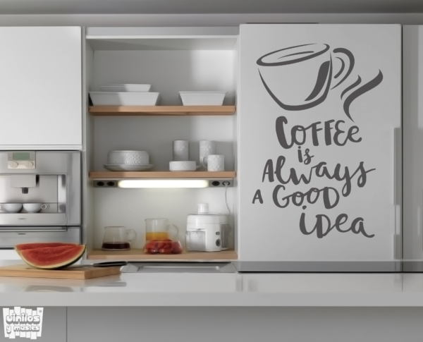 Vinilo decorativo frase: Coffee is always a good idea  «el café siempre es una buena idea».