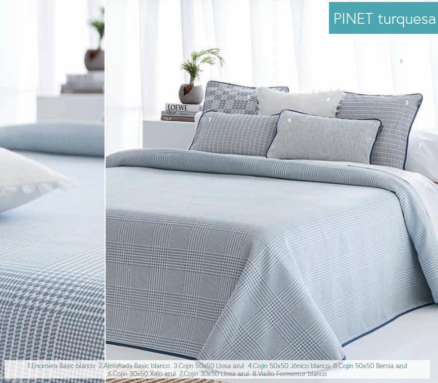 Combina con los cojines para conseguir el Look de Colcha Pinet, o con los básicos como cojines, cortinas y sábanas de la marca.