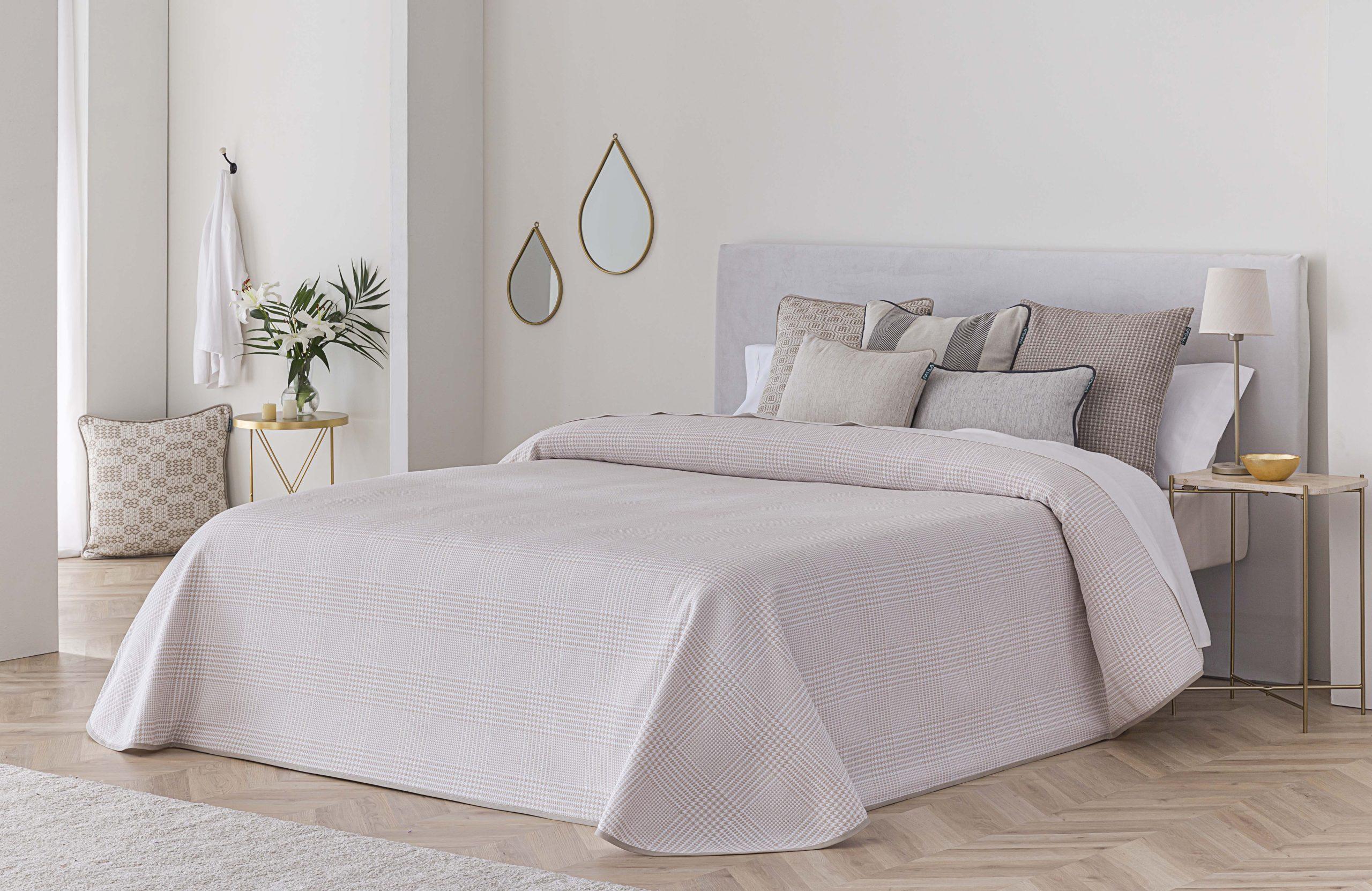 Colcha Reversible PINET C. Paula, estampado en cuadros, para dormitorio matrimonial o juvenil.