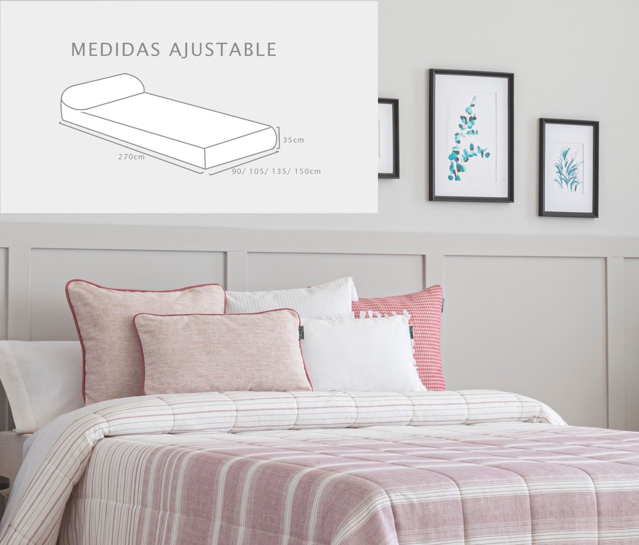 Edredón Ajustable Duero es perfecto para cama de 90 y 105 cm y colchones de 190/200 cm de largo.