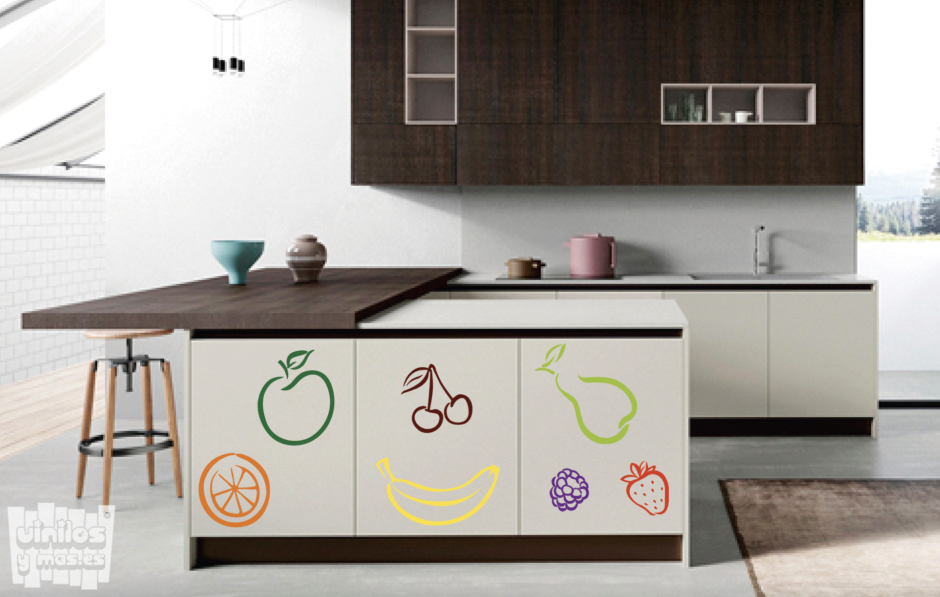Vinilo decorativo de frutas de colores.