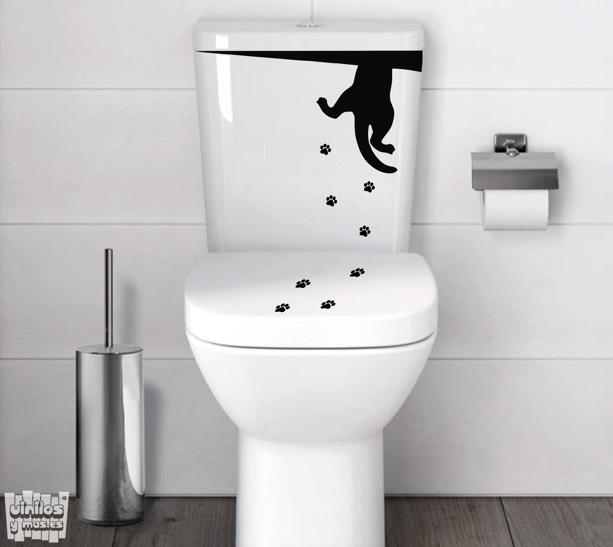 Vinilo decorativo gato wc.