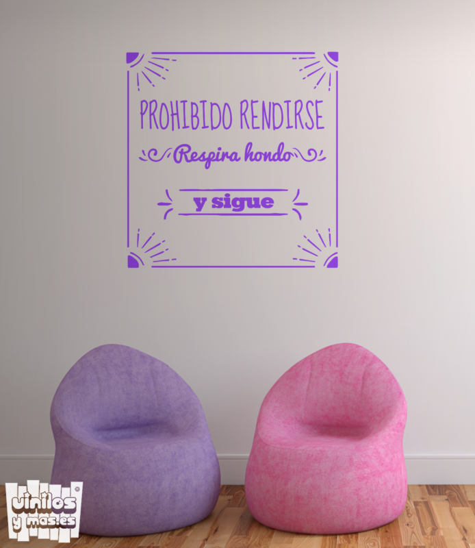 Vinilo decorativo frase: prohibido rendirse, respira hondo y sigue