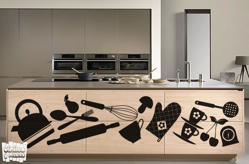 Vinilo decorativo Utensilios cocina flor 2.